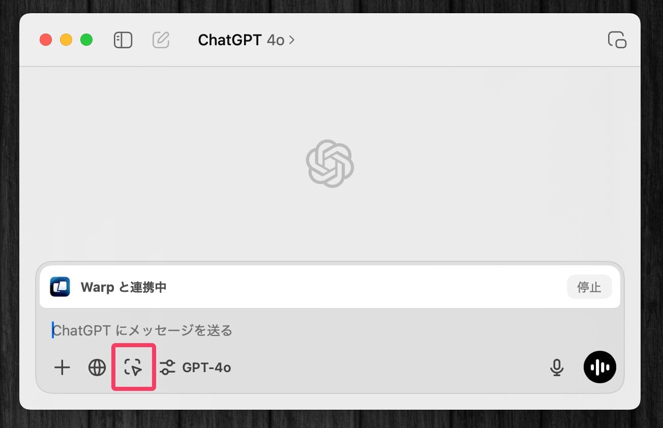 - ターミナル(Terminal、iTerm、Warp、Prompt): 最前面ペインの最後の200行程度が参照対象。選択テキストがある場合、その範囲と隣接するテキストを中心に処理。