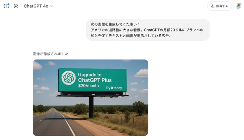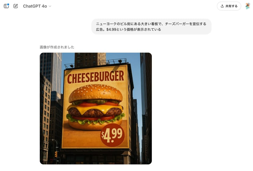 4o Image Generationでテキストを含む画像を生成する方法は非常にシンプルで、ChatGPTとのチャットの中で、画像に含むべきテキスト情報を伝えるだけで良い。