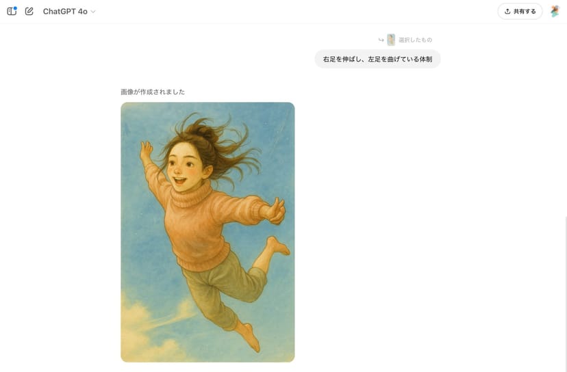 すると、GPT-4oが、選択部分と修正指示を踏まえて、再び画像生成を開始する。