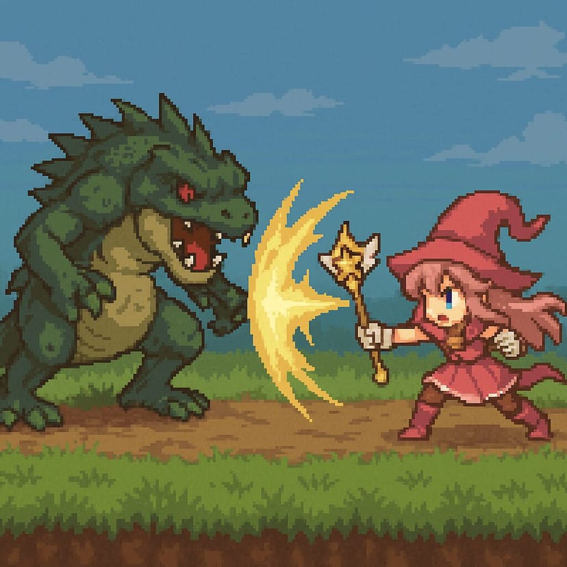 そして、そのキャラクターが実際にモンスターと戦っているシーンを描写させてみる。