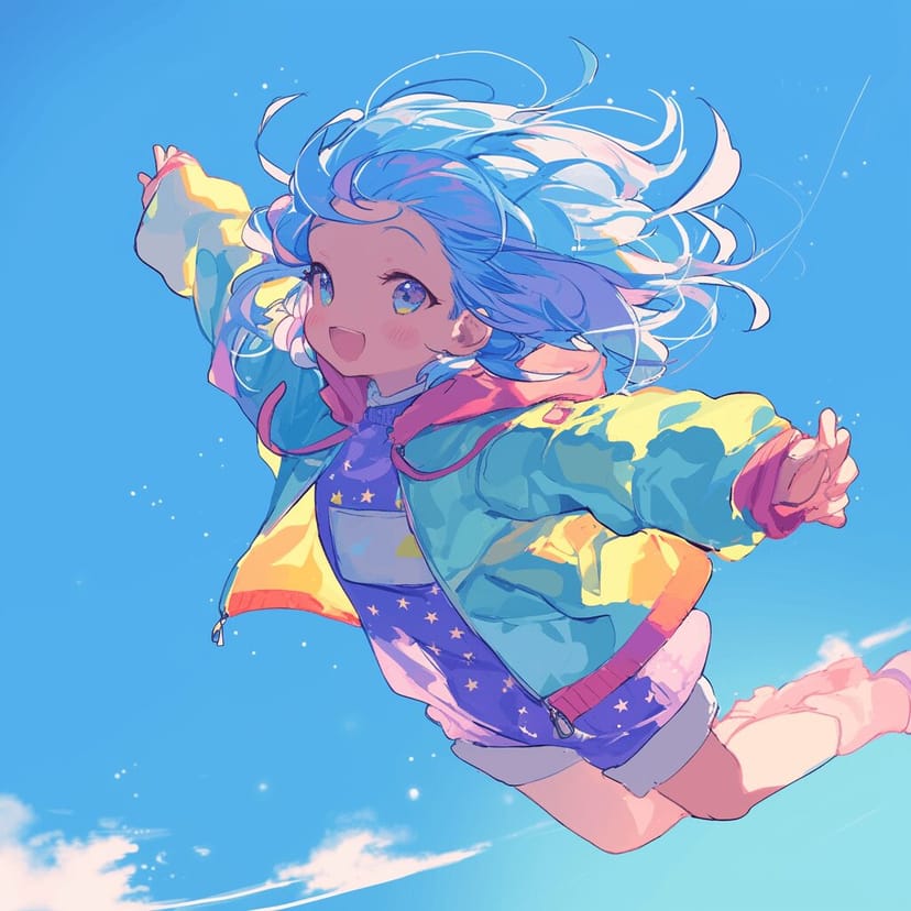 参考画像として用意したのは、少女がスカイダイビングしている様子の以下のイラストである(Midjourneyで生成)。