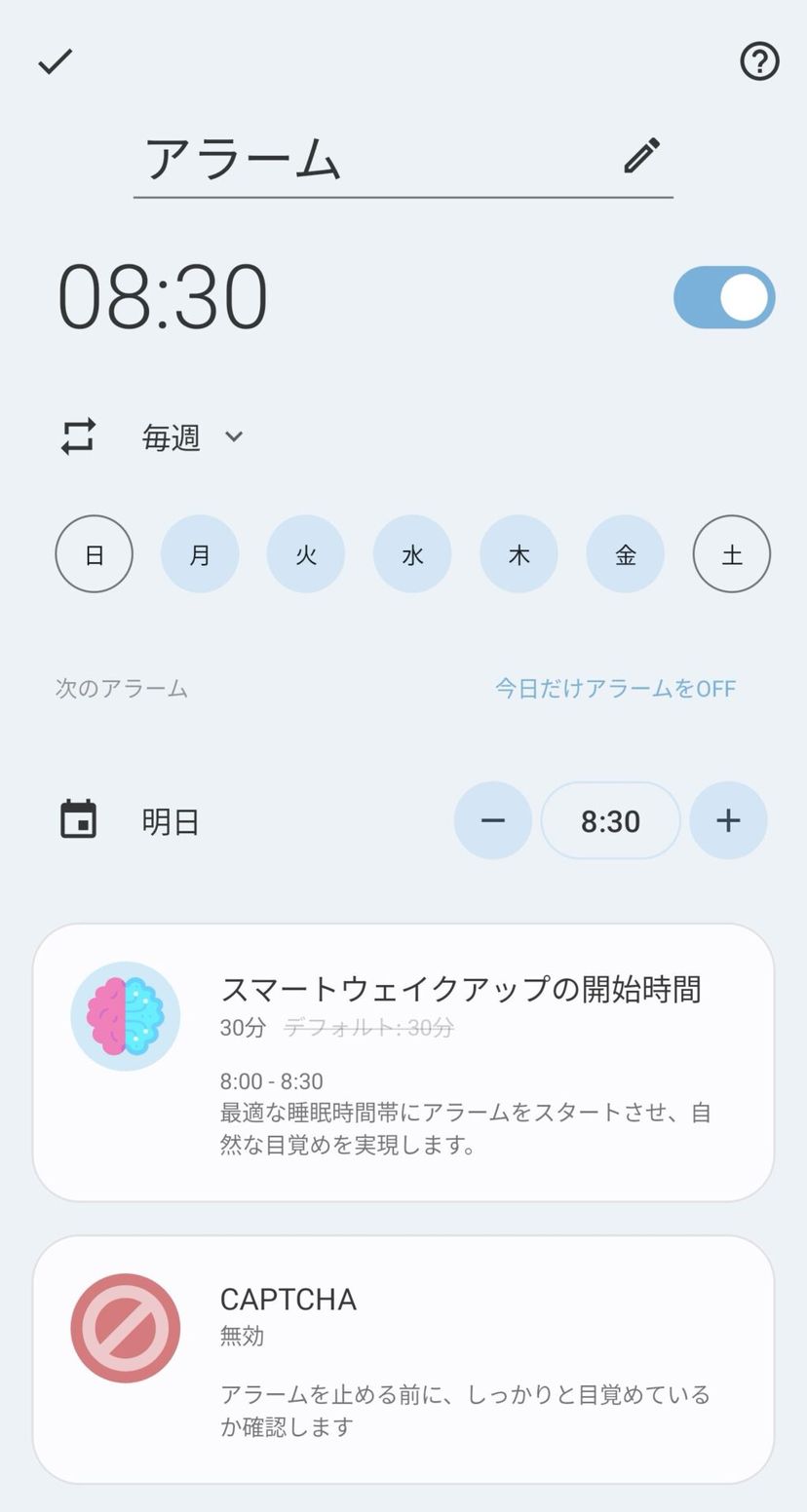また、最適なタイミングで起こしてくれるスマートアラーム機能も便利だ。