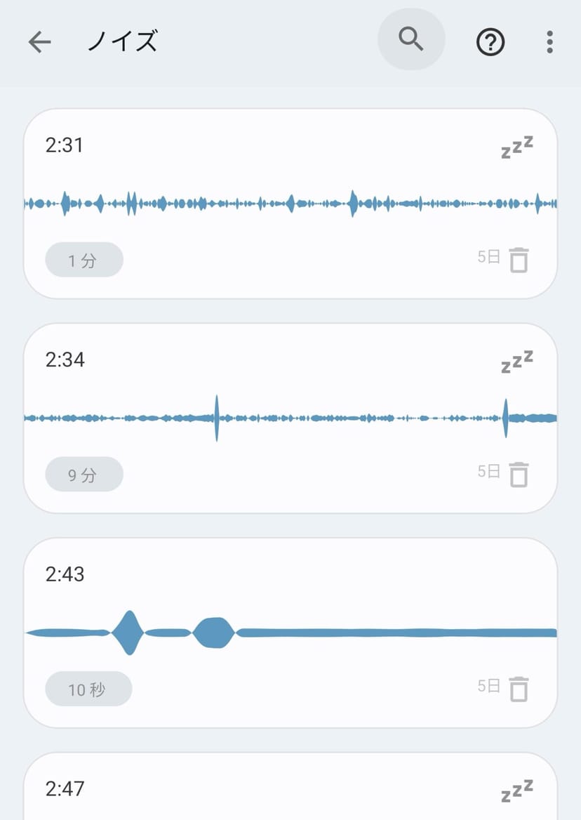 音声は自動で録音されるので、自分がどれくらいいびきをかいているかなどを、実際に録音を聞いて把握することができる。