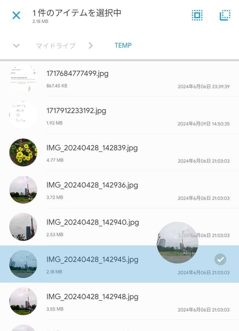 また、ファイルをタップして長押しすれば、ドラッグ&ドロップ操作でフォルダを移動することができる。