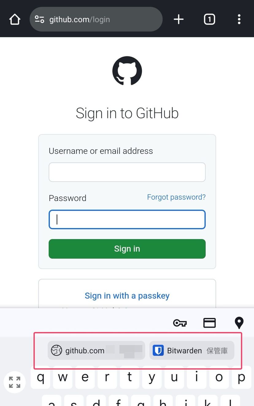 スマホやタブレットのGoogle Chromeなどのブラウザで、ログイン画面を開くと、キーボード上部に自動入力候補が表示され、指紋認証するだけで入力してくれる。