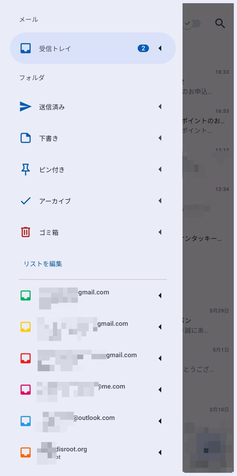 スワイプすることで未読・既読の切り替えや、アーカイブができるので、直感的にメールを処理することができる。