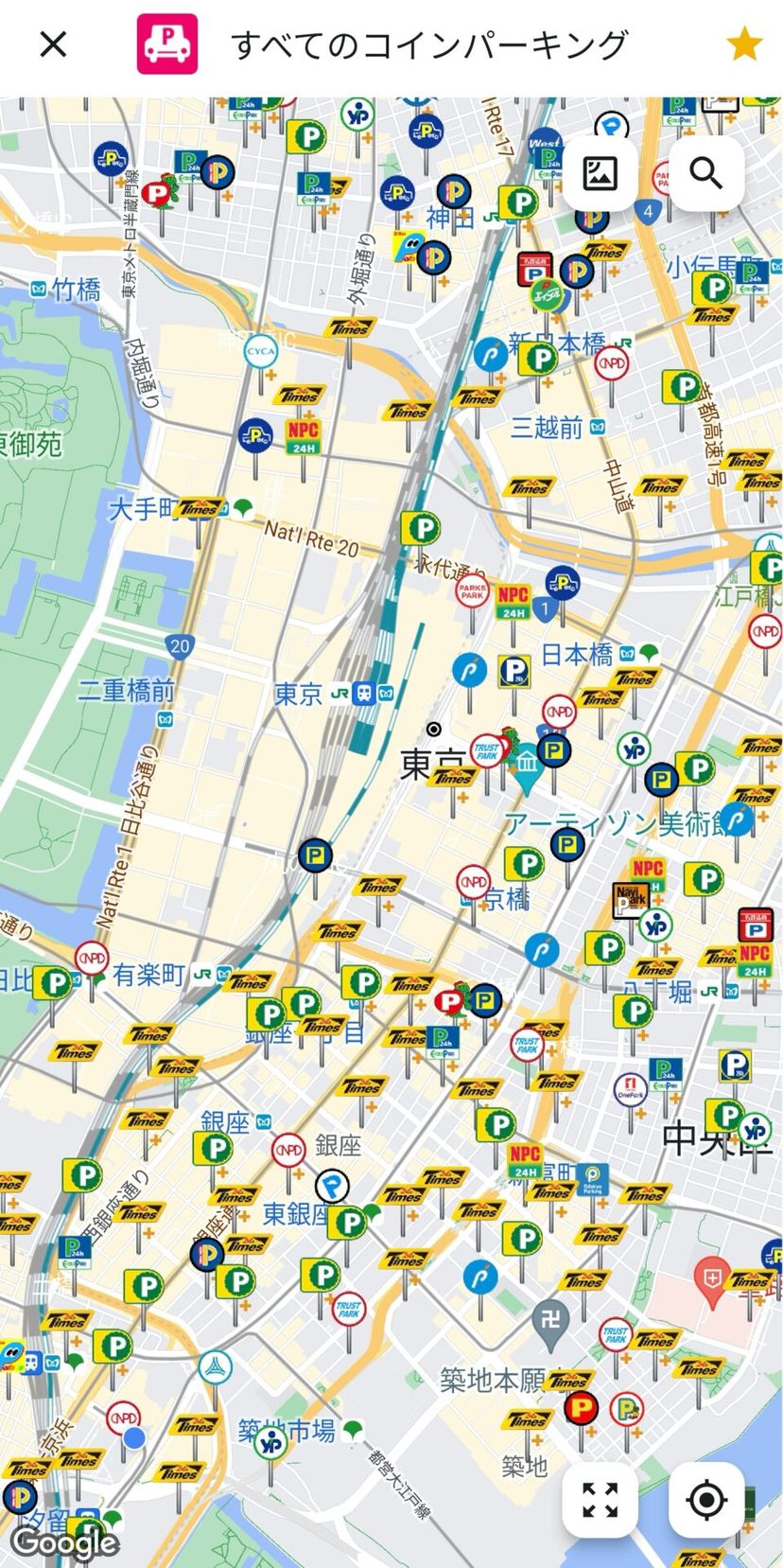 車ユーザーであれば、コインパーキングやパーキングメーターも非常に便利である。地図上のピンをタップすると、Googleマップなどでナビを開始することもできる。