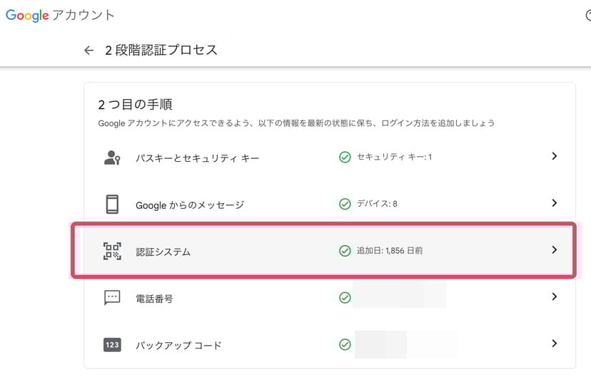 以下はGoogleアカウントの設定画面の例だが、「認証システム」という項目をクリックすると、QRコードが表示され、それを2FASアプリで読み込むことで、アカウントと2FASをリンクできる。