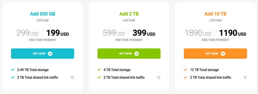 例えば、500GBのストレージが199ドル、2TBのストレージが399ドルの1回の支払いで、一生涯使い続けることができる。