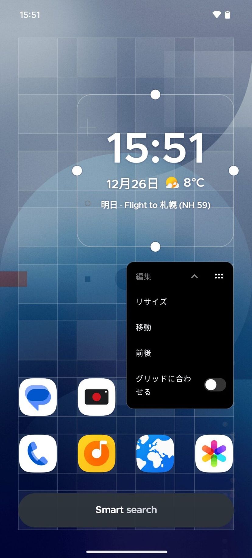 更に、大画面化が進む近年のスマホでも操作ストレスを減らせるよう、画面下部に重要な項目が集約されており、ホーム画面の「Smart search」検索バーからアプリやファイルを瞬時に呼び出せる。