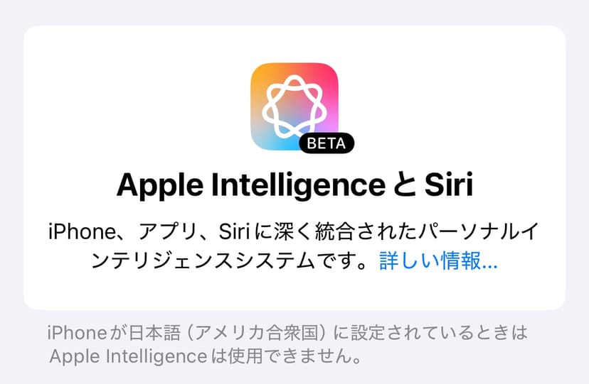 iOS 18.2をインストールしても、「日本語に設定されているときはApple Intelligenceは使用できません」と表示されてしまう。