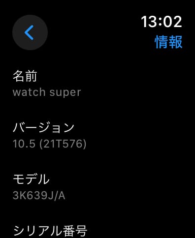 Apple Watch本体の設定画面を開いてみるとモデル番号が、デモ機のものとなっていることが分かる。