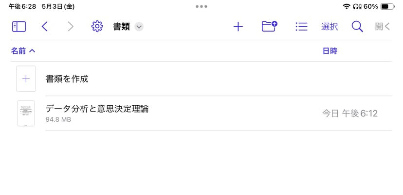 実際に、先ほどサンプルで作成してみた『データ分析と意思決定理論』のPDFを、MacからpCloudに保存すると、iPadのPDF Viewerアプリ上からもアクセスできる。