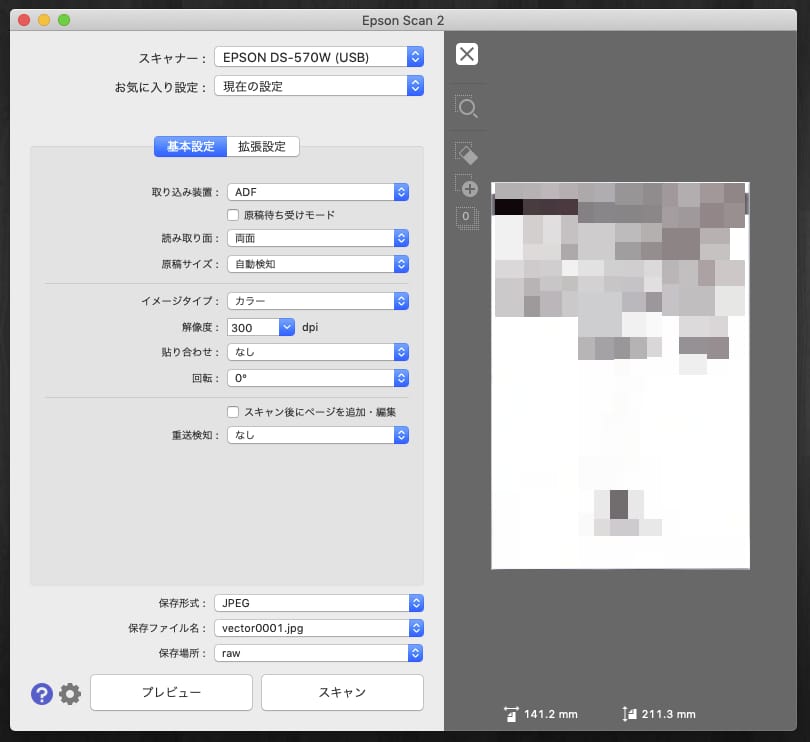 これ以上の画質設定にすると、EPSONのDS-570Wでは非常にスキャンスピードが遅くなるので、300dpiがスイートスポットだと考えている。