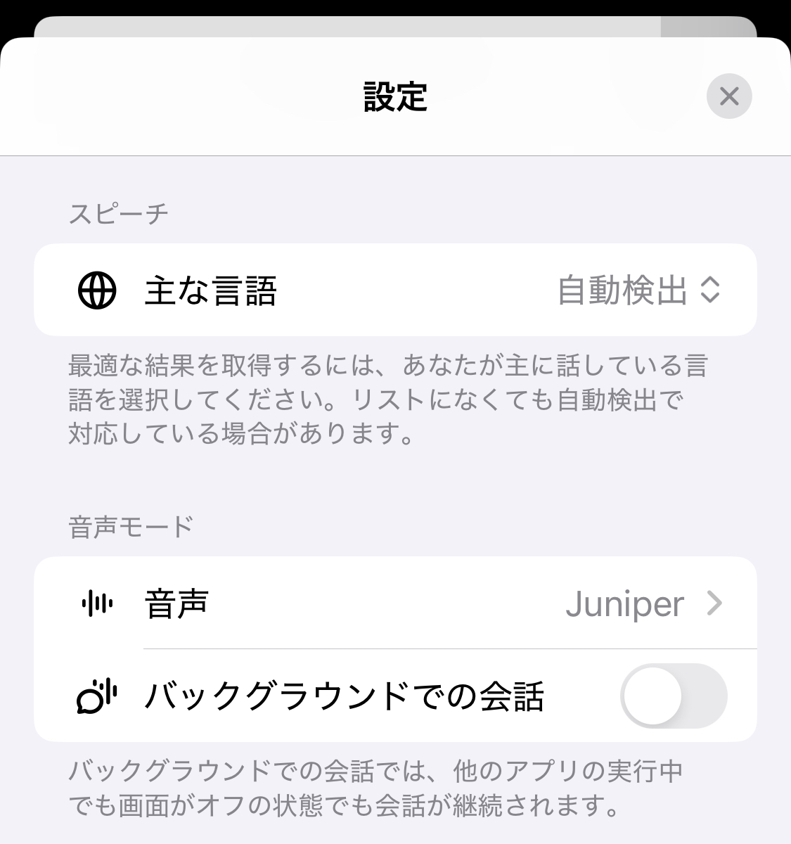 新しいChatGPTのボイスモードでは、設定から、「バックグラウンドでの会話」をオンにすることが可能である。