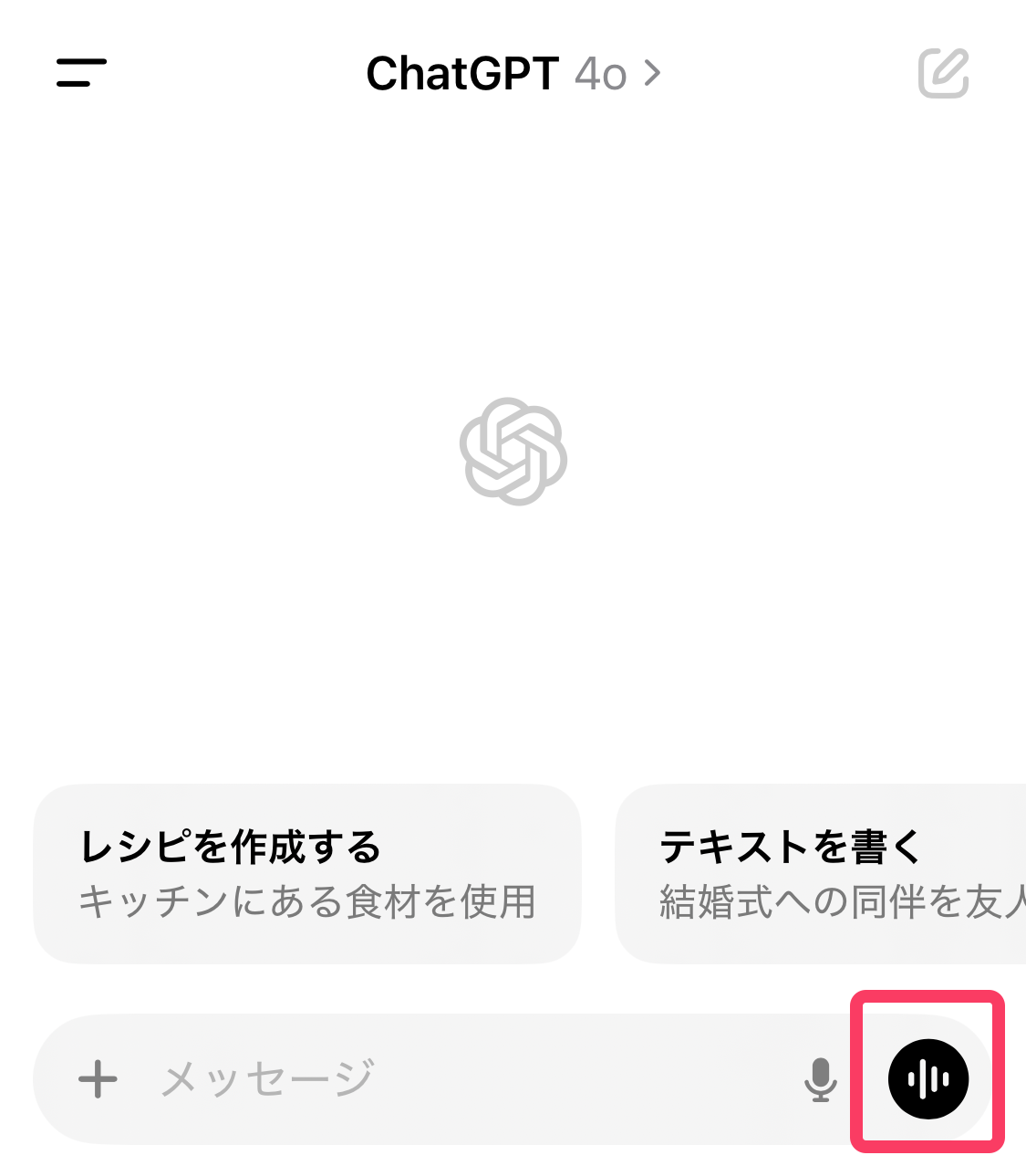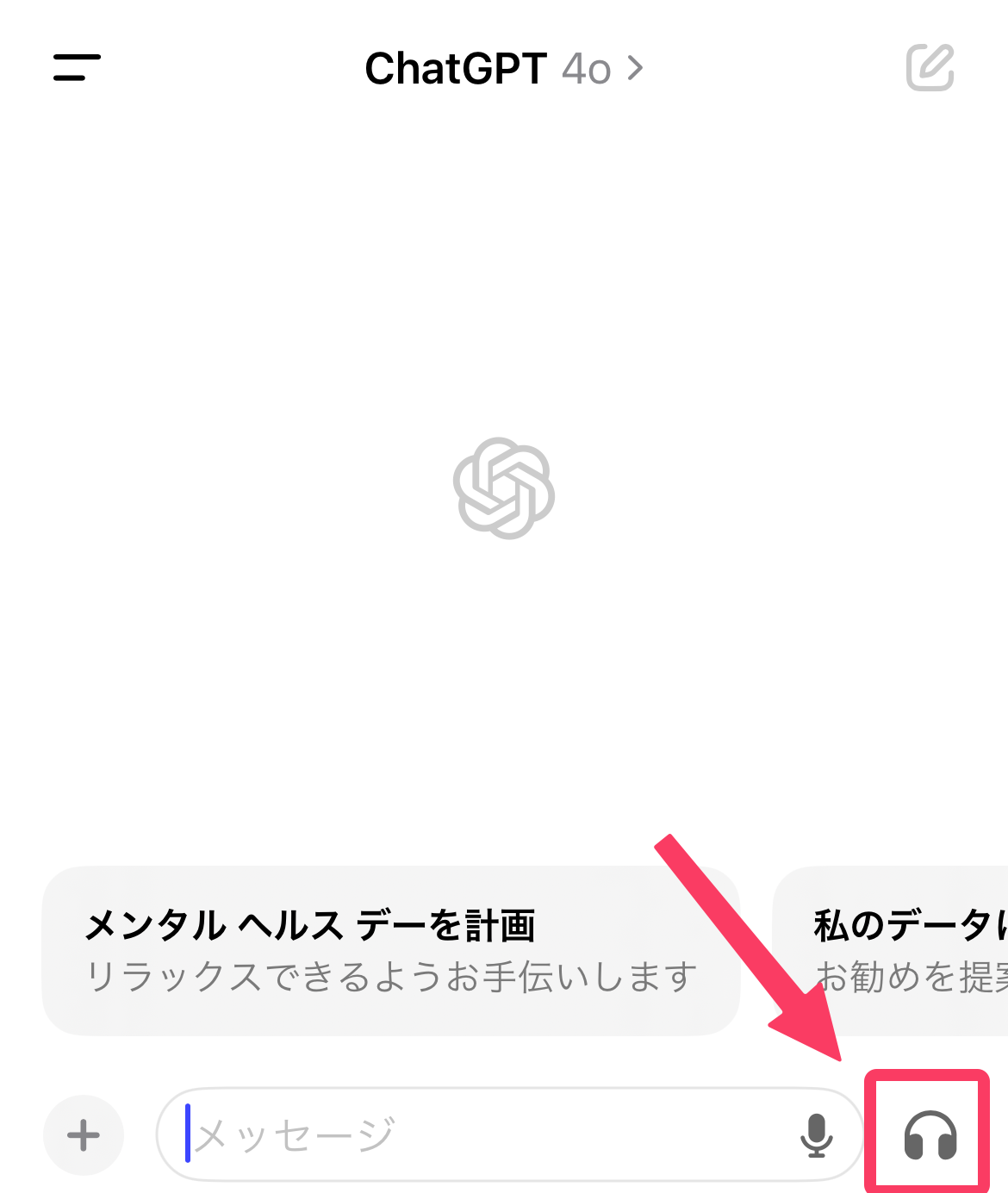 iPhoneやAndroidでChatGPTのアプリを開き、右下のマークをタップすると利用できる。