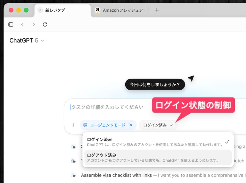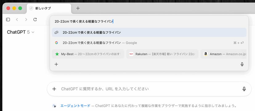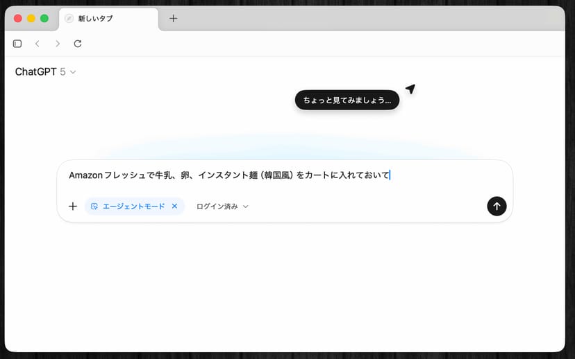 ChatGPT Atlas の目玉機能といえば、やはりこのエージェントモードであろう。