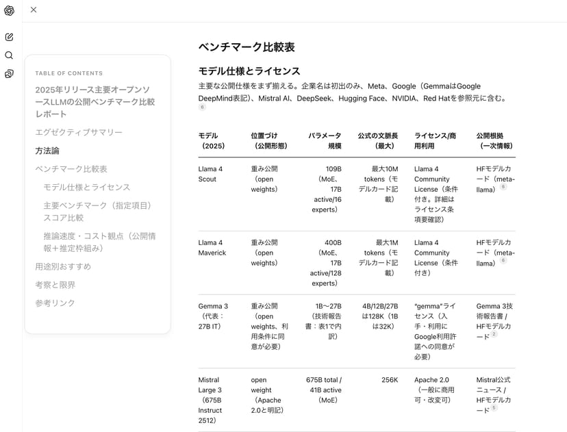 1年以上前に登場した「o3」モデルから、最新の「GPT-5.2」モデルへの切り替えによって、明らかにDeep Researchの生成するレポートの質が向上している。