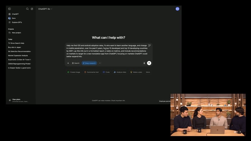 本日行われたライブ配信「Introduction to Deep Research」では、マーケットリサーチで「Deep Research」を活用する例を示しながら、使用方法が示された。