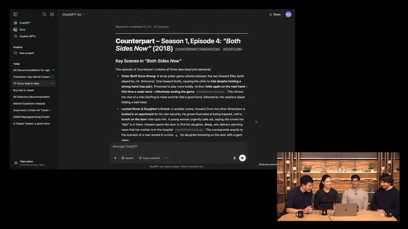 OpenAIが、日本時間2025年2月3日の朝9時に、ChatGPTの新機能「Deep Research」に関するライブストリームを実施した。