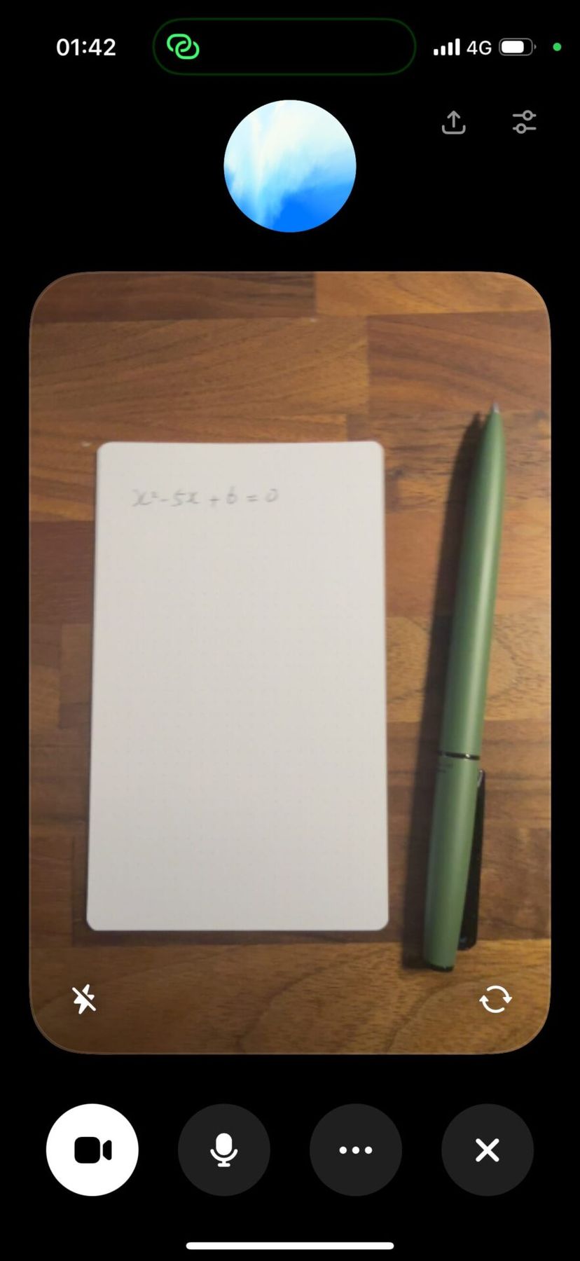 実際にiPhoneのChatGPTアプリで、Live cameraを有効にしてみると、以下のようにリアルタイムでカメラの映像を見ながら、ChatGPTと会話することができる。