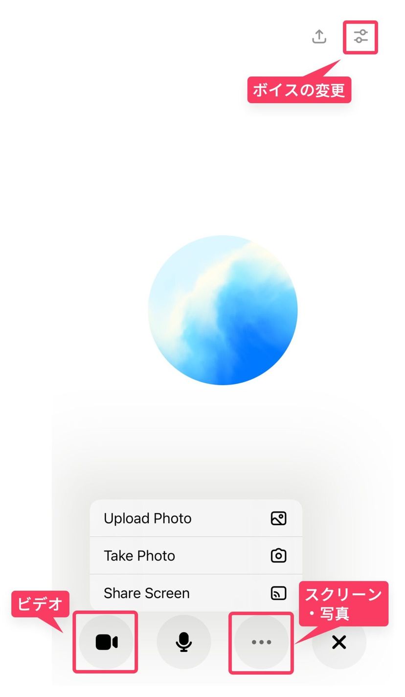 使い方はとても簡単で、ChatGPTアプリでAIと音声による会話ができる「音声モード」を起動した後、カメラ・スクリーンシェアのいずれかをオンにすれば良いだけだ。