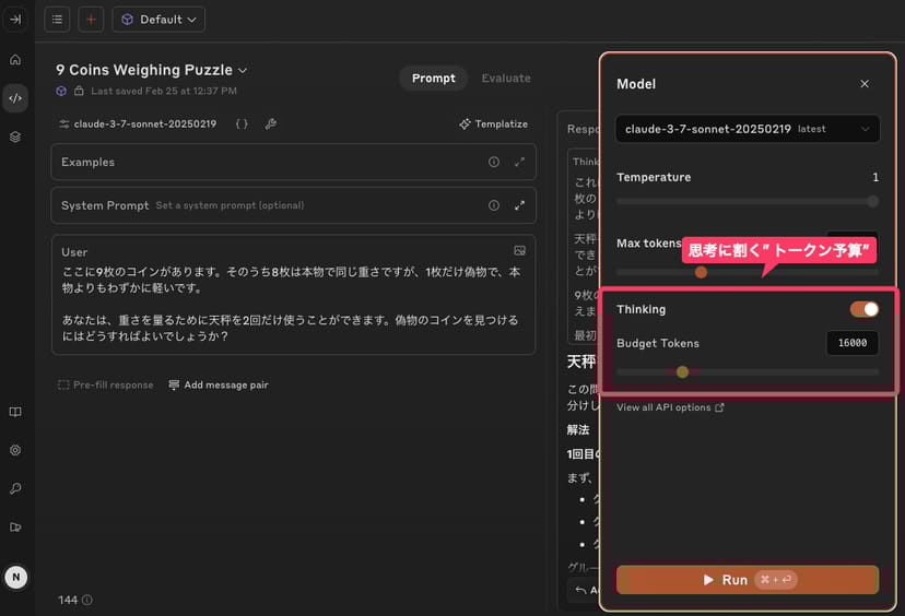 API利用の大きなメリットは、拡張思考モードの細かな制御ができることである。前述のように、モデルに考えさせるトークン数の上限(CoTに割くトークン数)を設定可能なので、用途に応じて思考レベルを調整できる。