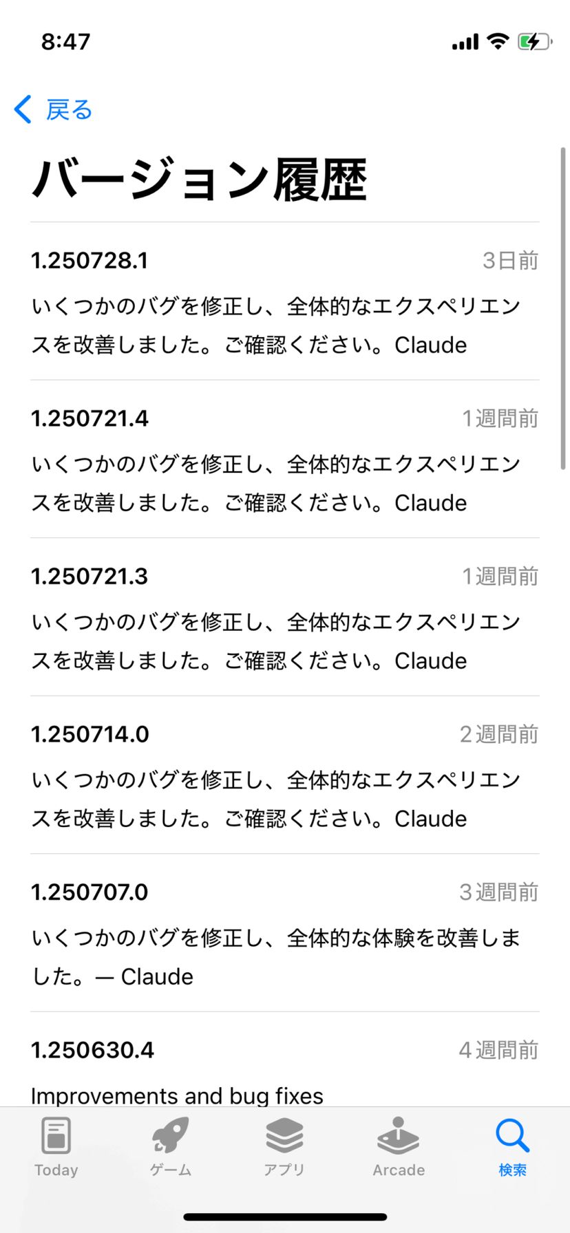 Claudeのアプリは定期的にアップデートされているが、具体的にどのような機能が実装されたのか、App Store のリリースノートを見てもほとんど分からない。
