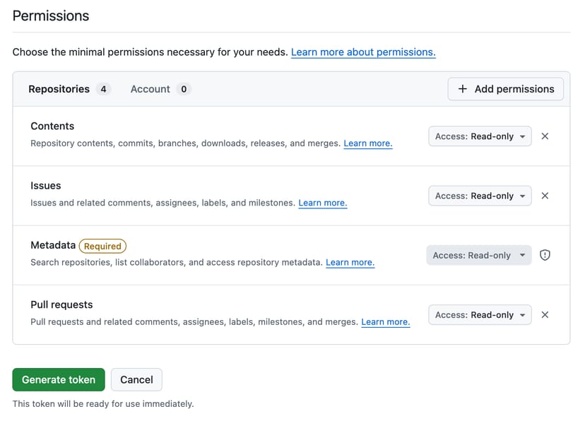 Repository permissions(最低限必要なもの)