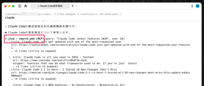 Jina AI MCPを入れておけば、「このライブラリについてWebで調べて」と一言指示するだけで、Claude Codeがリサーチを代行してくれる。検索から結果の読み込み、要約までシームレスに行われるので、自分はエディタから離れずに作業を続けられる。
