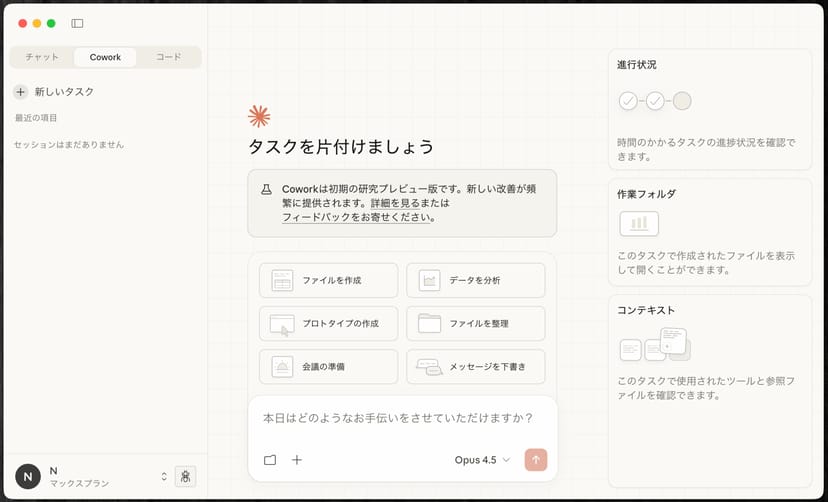 チャットAIしか触れたことのない読者も、この記事を読み終える頃には、Coworkを自分の仕事・研究・勉強にどう活かせるか、具体的にイメージできるはずだ。