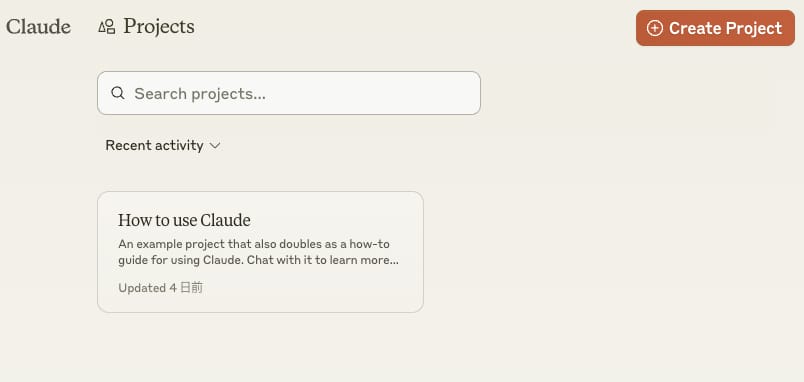 使用するには、Claudeにログインした状態で、ClaudeのProjectsのページにアクセスする。