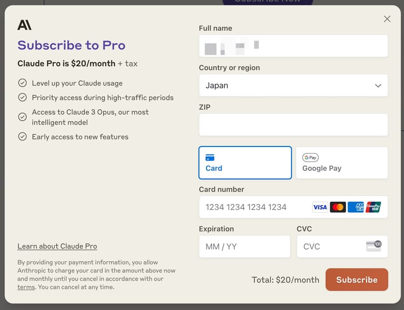 この点、APIキーを使うと、月額契約なしで、使った分だけの従量課金でClaude 3 Opusを利用できる。