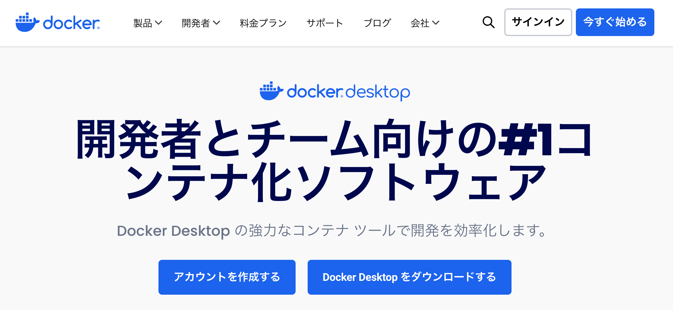 Macでも、Windowsでも、簡単にインストールできるので、以下から「Docker Desktop」アプリをダウンロードしておこう。