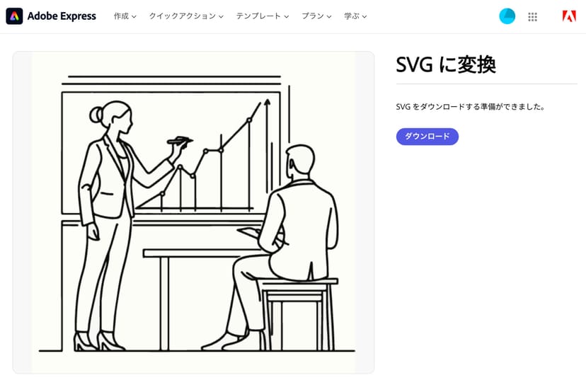 おすすめは、Adobeアカウントがあれば誰でも無料で利用できるAdobe ExpressのSVGへの変換サービスだ。