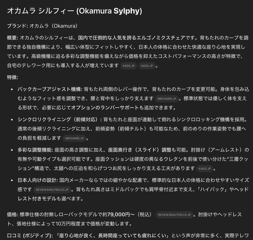 こうした日常の買い物の選択肢を調べたり、電化製品のレビューを読みたい程度の用途なら、ChatGPTのDeep Researchはオーバーキルだと感じる人もいるだろう。
