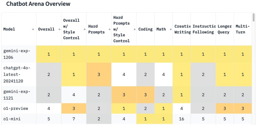 Chatbot Arenaの全カテゴリトップに突如躍り出たGemini