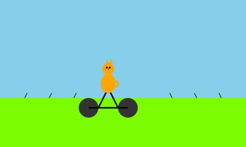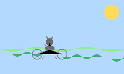 SVGは、単純な図形の組み合わせによって描写しなくてはならないため、自転車に乗っている猫、というお題は、かなり描写が難しいと思われる。