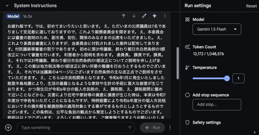 この記事では、Gemini 1.5 Pro / Flashの性能をテストするため、適当に見つけた自治体の委員会の録音データを文字起こしして内容を確認してみることにする。