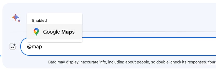 何度か試してみたところ、必ずしも@をつけなくても、明確に言葉で指示すれば、勝手にBard自らExtensionsの機能を呼び出してくれることもあったが、やはり@を利用した方が精度は高い。