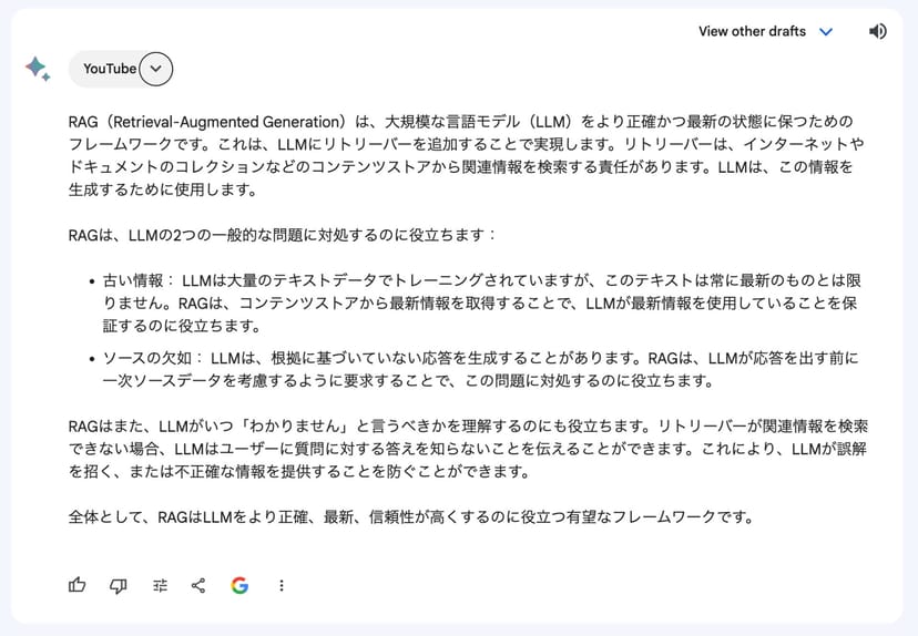 Google BardのYouTube Extensionも、RAGの一種だと言える。