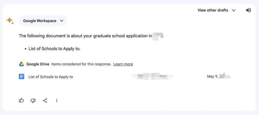 この使い心地は、Googleのサービスと統合されているからこそできる技で、ChatGPTなど他社のサービスでは実現できないだろう。