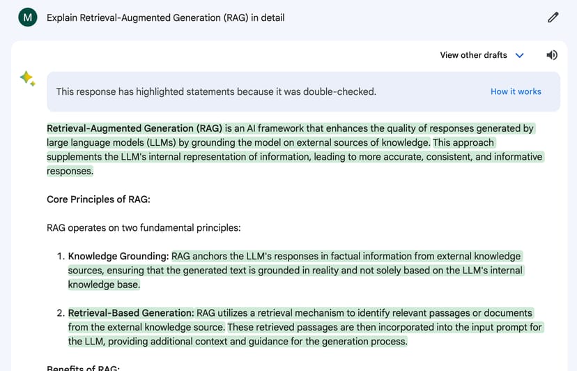Hallucinationsを防ぎ、事実と異なる誤った回答の可能性がある場合に、アラートが表示されるという、大規模言語モデルのAIの欠点を補う非常に先進的な機能だ。