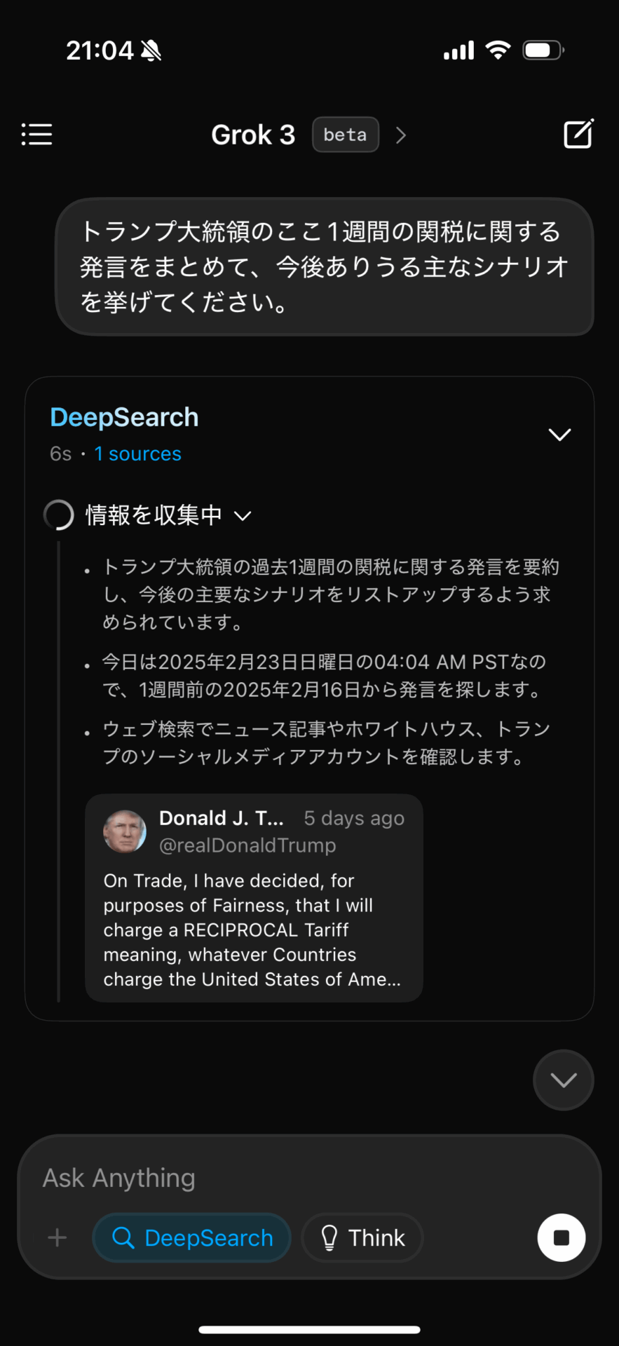 通勤途中の電車の中などで、その日のリアルタイムニュースの要約をGrokにDeep Researchしてもらう、なんて使い方もできるので、夢が広がる。