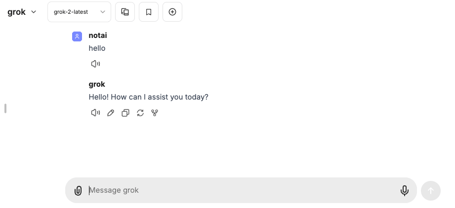 docker compose downgit pulldocker compose pulldocker compose up成功すると、LibreChatのモデル選択プルダウンメニューから、Grokを選択することができるようになっているはずだ。