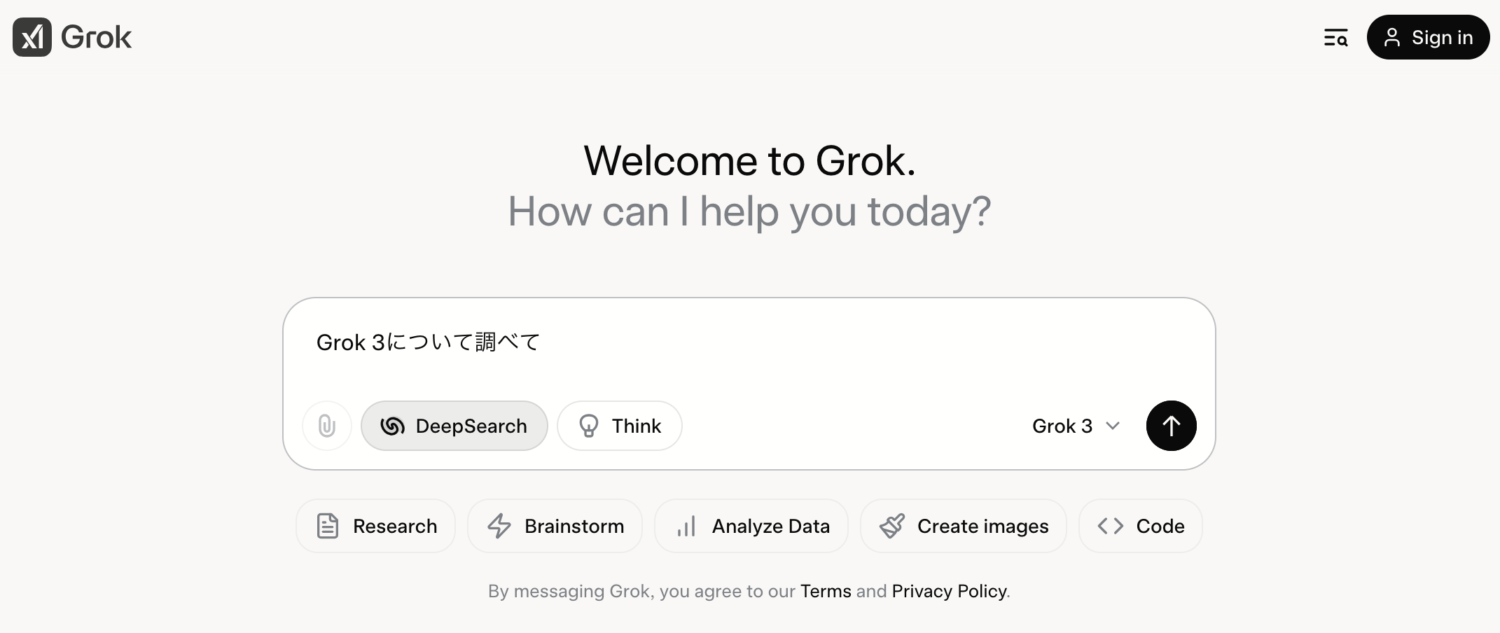 サインインさえすれば、現在は無料で最新かつ最高性能の「Grok 3」が利用できる。