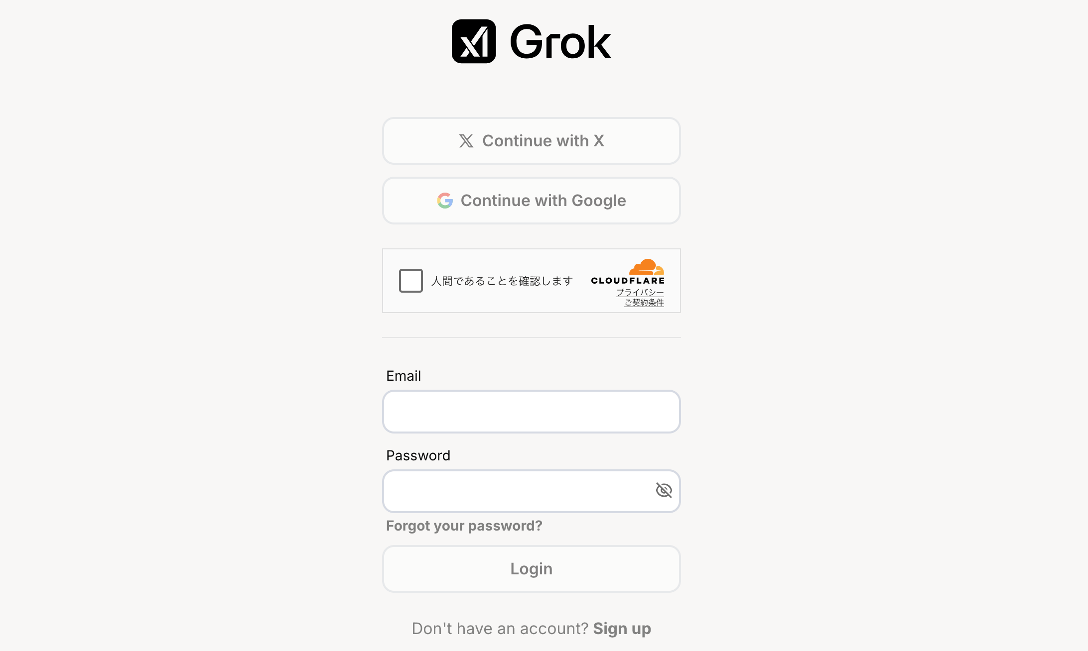 「Grok 3」を選択してチャットを入力すると、サインイン・会員登録が要求されるので、Xのアカウントを紐つけるか、新たにメールアドレスでアカウントを登録することが必要だ。