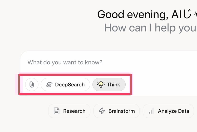 Deep Searchモードは、「Think」機能とWeb検索・Xポスト検索を組み合わせたような機能だ。