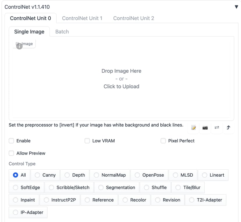 ありがたいことに、Vast.aiのStable Difussion WebUI用のDocker Imageには、起動した時点でControlNet 1.1プラグインが導入されている。