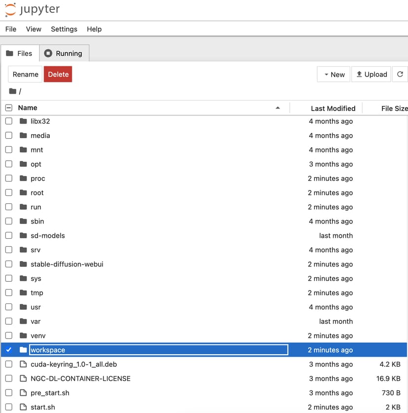 初期状態では、Stable Diffusionのベースモデルなどしか入っていないので、いきなりStable Diffusionを起動するのではなく、まずはJupyterを起動して、CivitaiやHugging Faceから入手したモデルをアップロードすることから始める。